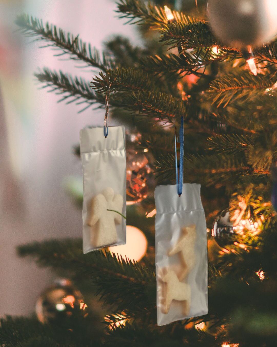 袋に紐を通せばオーナメントとしてツリーに飾れます。