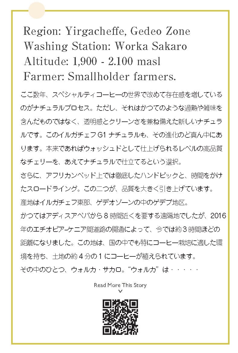 生産地 / Region: Yirgacheffe, Gedeo Zone, Wuri / イルガチェフェ、ゲデオゾーン、ウリ村